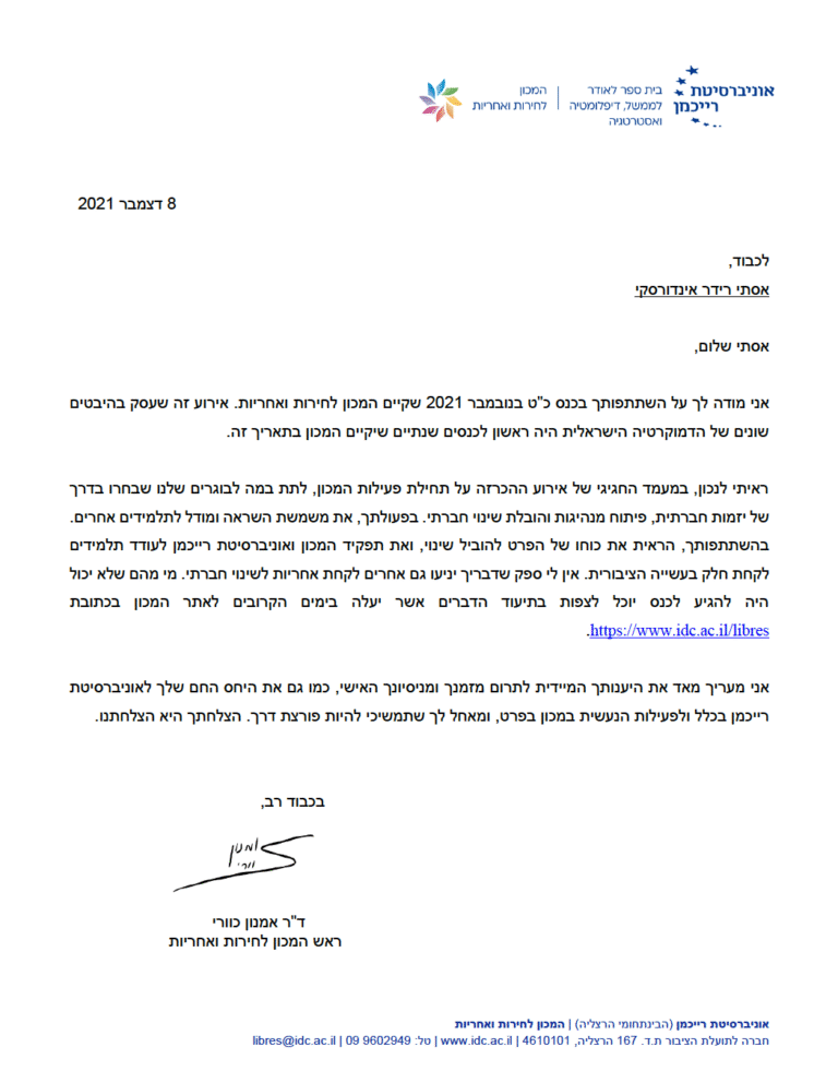 ד"ר אמנון כוורי, ראש המכון לחירות ואחריות